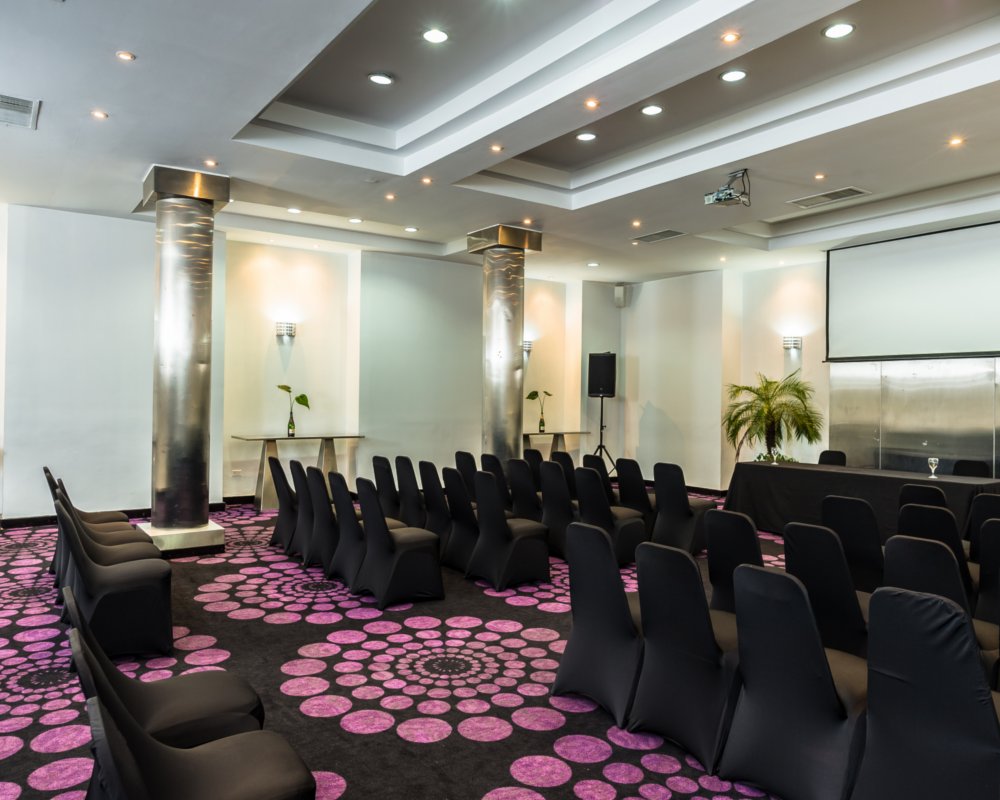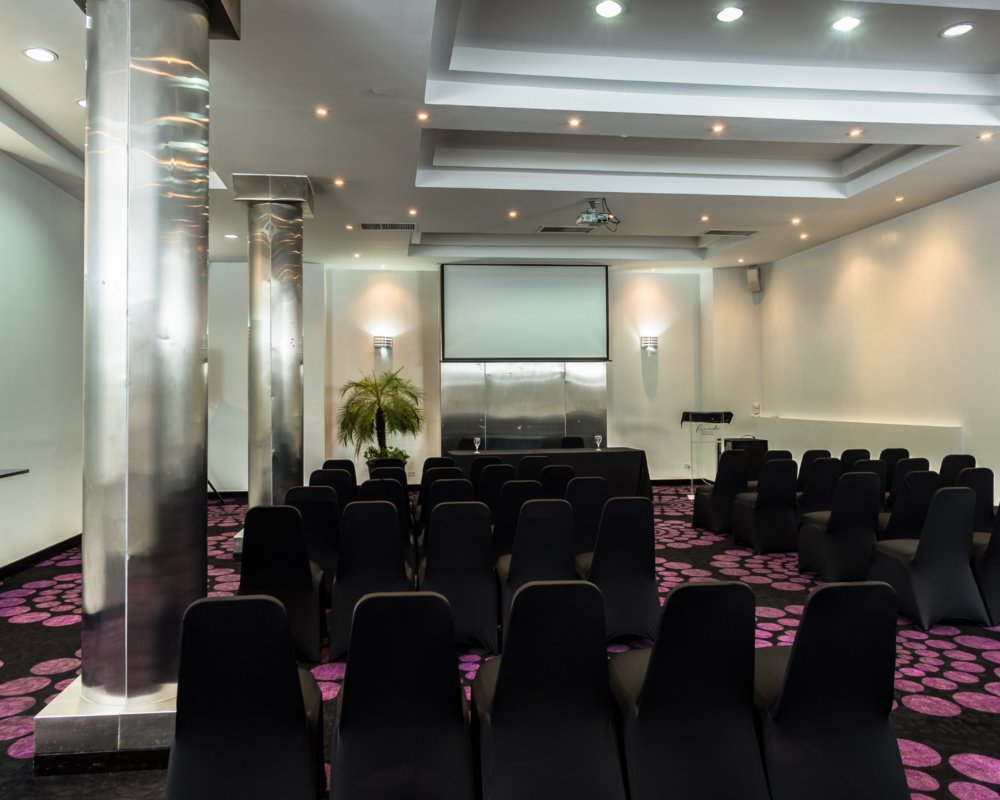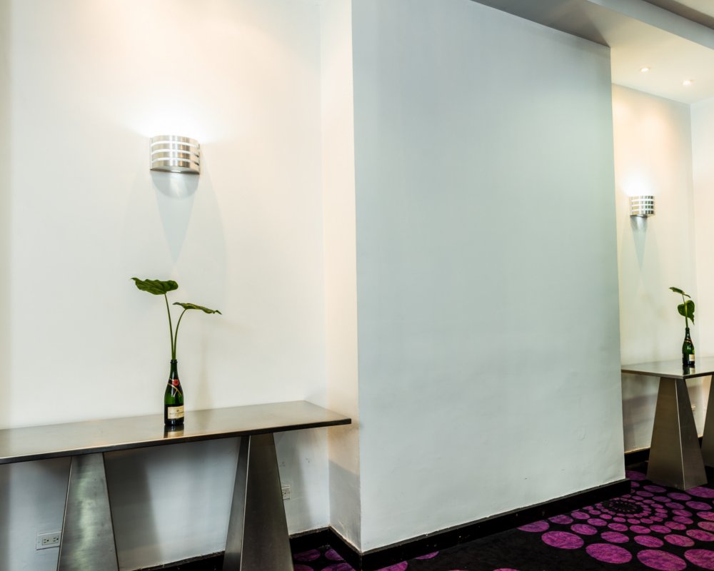 Ubicado en la zona interior del primer piso, un lugar privado y silencioso. Tiene una decoración minimalista, con una superficie de 110m2 y una capacidad para entre 80 y 100 personas según el montaje elegido.